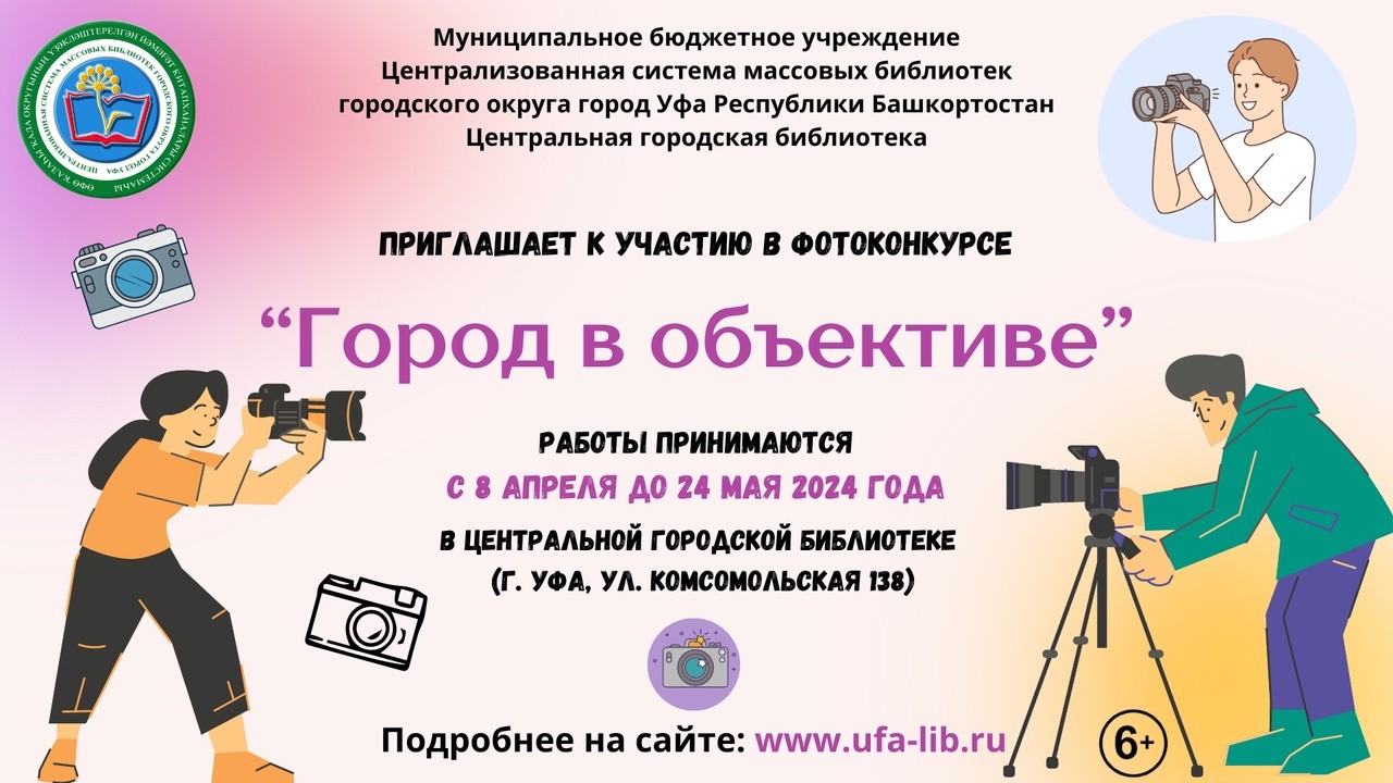 С 08 апреля по 12 июня 2024 года в Уфе проходит фотоконкурс «Город в объективе». В Фотоконкурсе могут принять участие все желающие от 6 лет и старше. Организатором конкурса выступает Центральная городская библиотека МБУ Централизованная система массовых библиотек городского округа город Уфа Республики Башкортостан. Целями фотоконкурса являются: воспитание уважительного отношения к Родине, её истории, культуре, традициям; формирование и развитие социально значимых ценностей, гражданственности, патриотизма, любви к своему городу; формирование представления о богатстве культурно-исторических памятников города; позитивного имиджа города Уфа; расширение кругозора, развитие наблюдательности, эстетического вкуса. Фотоконкурс включает следующие номинации: - «Милый сердцу город» - фотографии с красивыми уголками города Уфы; - «Самые узнаваемые места в Уфе» - фотографии, на которых изображены достопримечательности города (памятники, архитектура города, арт-объекты и т.д.); - «Яркие события в жизни города» - фотографии масштабных праздников и событий города Уфы. - «Городские семейные традиции» - семейные фотографии, отображающие национальные и традиционные ценности столицы Республики Башкортостан. На Фотоконкурс принимаются только цветные, любительские фотоработы, в распечатанном виде, формата А3 или А4) качеством не менее 300 DPI. Необходимым условием допуска к участию в Фотоконкурсе является заполнение заявки на участие и согласие на обработку персональных данных (Приложение № 1, 2). Фотоконкурс проводится в 3 этапа: 1 этап – с 08 апреля по 24 мая 2024 года - прием заявок и работ. Фотоработы в распечатанном виде, вместе с заявкой и согласием на обработку персональных данных, участник лично должен предоставить по адресу: г. Уфа, ул. Комсомольская, 138 (Центральная городская библиотека), не позднее 24 мая 2024 года до 12:00 по московскому времени. От одного участника принимается одна работа. 2 этап – с 27 мая по 7 июня 2024 года – отборочный. Будет проводится экспертная оценка работ членами жюри. Завершение работы экспертной комиссии 7 июня 2024 года. 3 этап – 12 июня 2024 года - торжественное подведение итогов Фотоконкурса на Городском семейном фестивале «Люблю тебя, мой город» в Саду культуры и отдыха имени С. Т. Аксакова. Информация о месте и времени проведения фестиваля «Люблю тебя, мой город» будет размещена на официальном сайте МБУ ЦСМБ ГО г. Уфа РБ и официальной странице Центральной городской библиотеки г. Уфы в социальной сети ВКонтакте, а также отправлена на электронную почту участникам Фотоконкурса. Три фотоработы победителей Фотоконкурса «Город в объективе» в каждой номинации, по итогам оценок жюри получат именные дипломы и подарочные сертификаты номиналом: 1 место – 3000 рублей, 2 место – 2000 рублей, 3 место – 1 000 рублей. Все участники Фотоконкурса «Город в объективе» будут награждены электронным сертификатом, который будет доступен для скачивания на сайте. Более подробная информация о конкурсе представлена по ссылке. Приглашаем всех желающих принять участие в фотоконкурсе! |