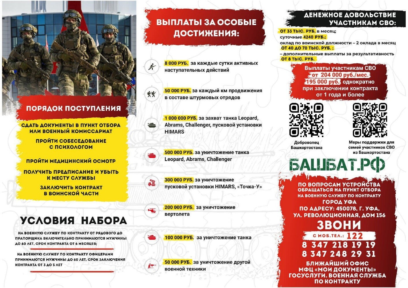Военный комиссариат по месту учета либо на Пункт отбора на военную службу по контракту, которая находится в г. Уфа, ул. Революционная, 156. Тел.: 8 (347) 248-29-31, 248-18-63.