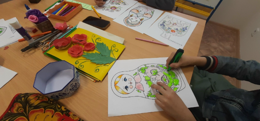 Каждый участник смог выбрать занятие по душе: кто‑то с увлечением рисовал весёлую матрёшку, продумывая её наряд и улыбку; другие старательно расписывали миниатюрную балалайку, вспоминая народные мелодии; любители утончённых мотивов осваивали изящные синие узоры гжели; некоторые вдохновенно рисовали цветочные композиции жостовского подноса; а самые смелые пробовали силы в самобытном стиле мезенской росписи, наполненной древними символами и образами. Глаза детей светились радостью и гордостью, когда они показывали друг другу получившиеся работы. В каждом рисунке читалась частичка души юного художника и уважение к богатому наследию наших предков. Мастер‑класс не только раскрыл творческие способности ребят, но и помог им лучше узнать культурное многообразие России. Библиотека вновь стала местом, где традиции встречаются с молодостью, а искусство объединяет поколения. Мы благодарим всех участников и организаторов за этот незабываемый день и с нетерпением ждём новых встреч! |