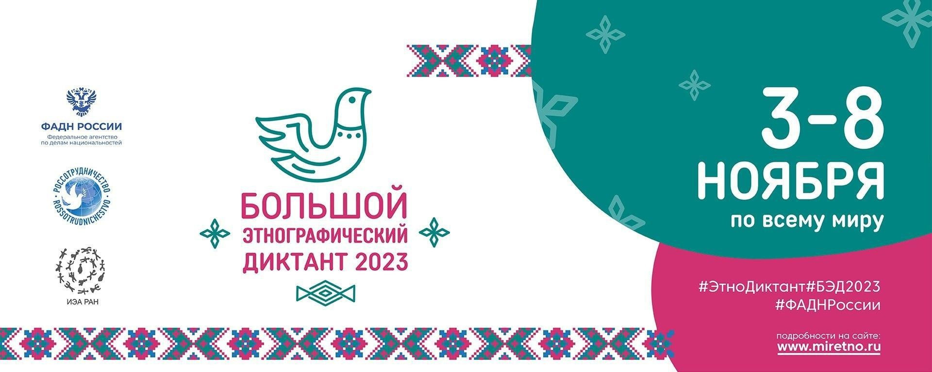 В 2023 году Международная просветительская акция «Большой этнографический диктант» состоится в восьмой раз под лозунгом «Народов много – страна одна!». Диктант проводится в канун Дня народного единства с 3 по 8 ноября 2023 года в онлайн-формате. Организатором Диктанта является Федеральное агентство по делам национальностей. Цель Международной просветительской акции - привлечь внимание людей к истории, культуре и традициям народов, населяющих страну. Это знание способствует укреплению согласия, межэтнического мира и национального единства народов Российской Федерации, а также поднимает уровень этнографической грамотности населения. Участниками Диктанта могут стать все желающие жители России и зарубежных стран. Организаторами Международной просветительской акции «Большой этнографический диктант» в Республике Башкортостан выступают Министерство культуры Республики Башкортостан, Министерство образования и науки РБ, Дом дружбы народов РБ. Задания для участников будут опубликованы 3 ноября на официальном сайте Большого этнографического диктанта https://miretno.ru/. Задания оформлены в виде теста из 30 вопросов и включают в себя: - 20 вопросов – общефедеральная часть диктанта, единая для всех участников; - 10 вопросов – региональная часть диктанта, уникальная для каждого субъекта Российской Федерации. Максимальная сумма баллов за выполнение всех заданий – 100. Время прохождения диктанта – 45 минут. Сертификат участника с указанием результатов формируется сразу после прохождения в электронном виде. Подробную информацию о Международной просветительской акции «Большой этнографический диктант» можно узнать на сайте https://miretno.ru/.