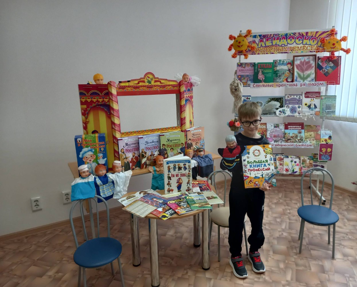 Выбор профессии — важное решение, которое влияет на всю дальнейшую жизнь человека. Важно с детских лет прививать детям интерес к разным профессиям. В модельной библиотеке состоялся познавательный час для юных читателей «Все профессии важны, выбирай на вкус». Библиотекарь рассказала о том, в каких библиотечных книгах и журналах можно узнать о секретах таких профессий, как: инженера, учителя, библиотекаря. В куклах настольного театра «Мы в профессии играем» ребята узнали персонажей современных профессий: программиста, фермера, кондитера, парикмахера, балерину, доктора, пожарного и полицейского. Яркая книжная выставка «Калейдоскоп чудесных ремесел» поможет расширить кругозор пользователей о необычных поделках и мастерах их создавших: вязальщицах, художниках, валяльщиках, гончарах и других.